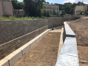 Viel hat sich in den letzten Monaten im Mühlgraben zwischen Untermühle und Weiße Elster getan: die alten Ufereinfassungsmauern wurden stabilisiert, standsicher verankert und saniert. Die Mauerkronen erhielten eine Blechabdeckung. Fußvorlagen vor den Stützmauern sichern zukünftig die Statik der Mauern und dienen gleichzeitig Betriebszwecken.