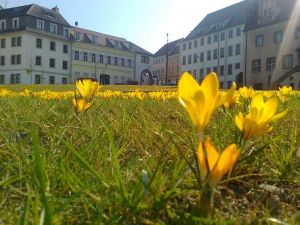 - ein Meer aus gelben Krokussen schmückt die Rasenflächen auf dem Altmarkt und lädt Innenstadtbesucher - Gäste wie Zeitzer - zum Verweilen ein.