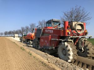 Hierzu kommt eine Großfräse zum Einsatz. Mittels Laboruntersuchung wurde zuvor bestimmt, wieviel Bindemittel und wieviel Wasser zuzugeben sind, um die notwendigen Endfestigkeiten erzielen zu können.